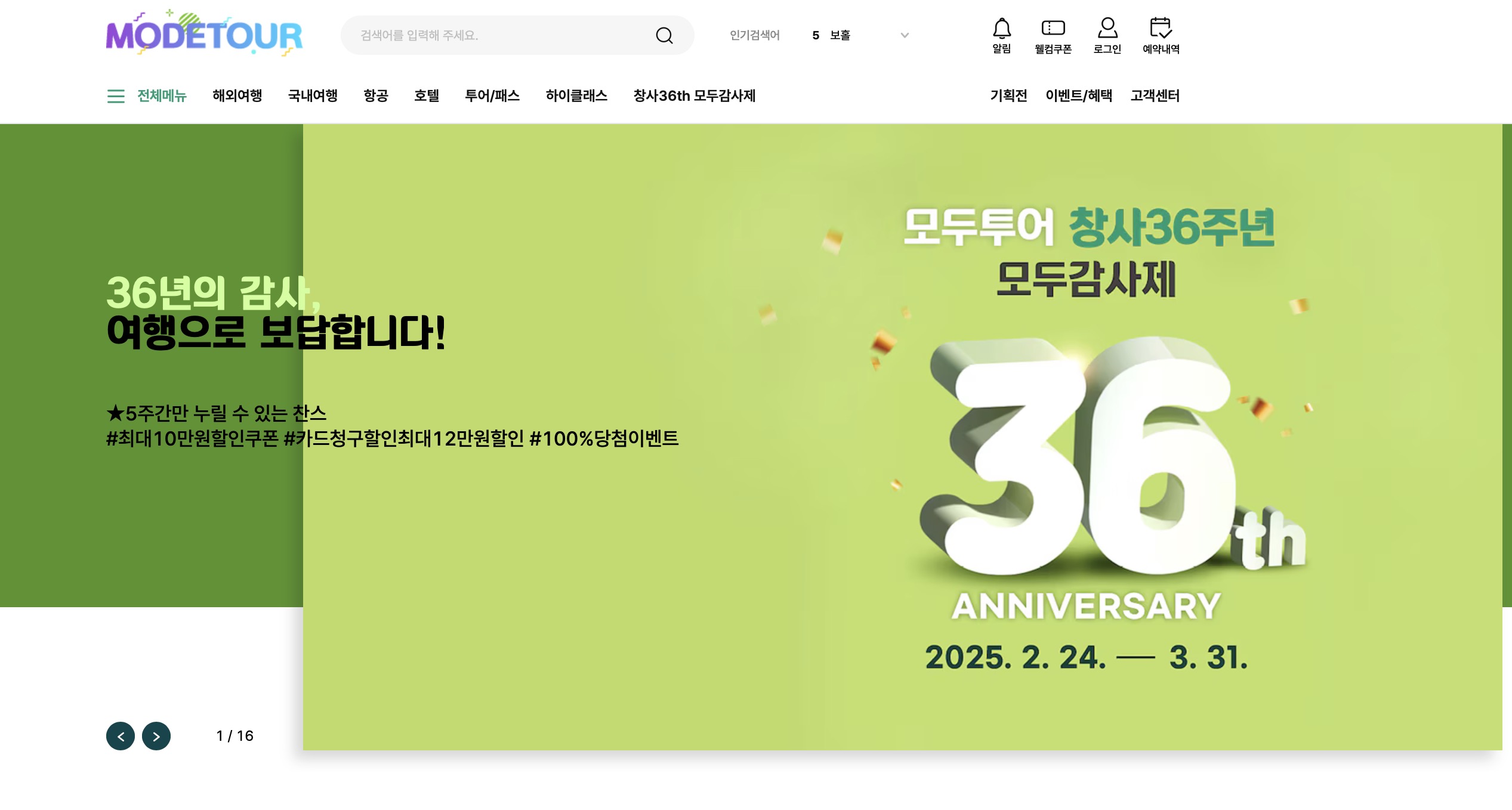 모두투어 여행사 홈페이지 (modetour)